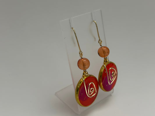 Heart Charm Resin Earrings with Purple Crystal Accent